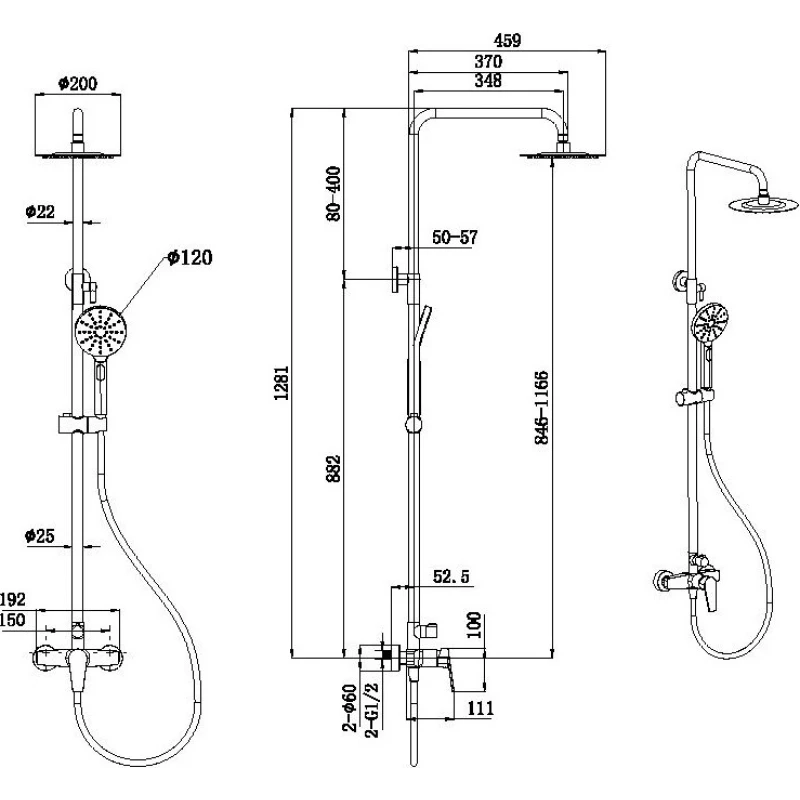 Металлическая розетка, Эксцентрики, Душевой шланг, Душевая лейка, Держатель для душевой лейки, Верхний душ, Смеситель, Кронштейн, Штанга душевая