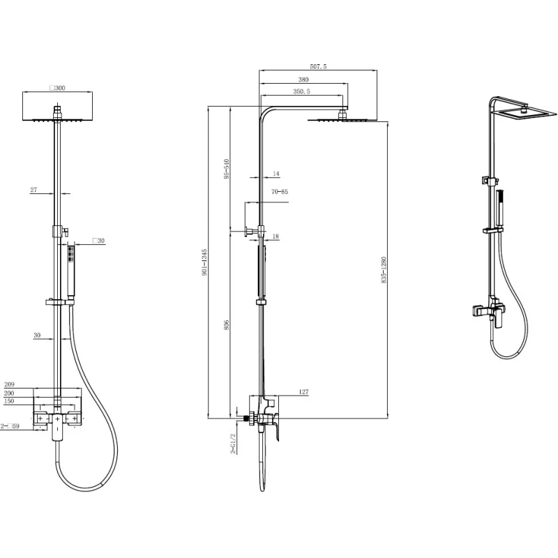 Металлическая розетка, Эксцентрики, Душевой шланг, Душевая лейка, Держатель для душевой лейки, Верхний душ, Смеситель, Кронштейн, Штанга душевая