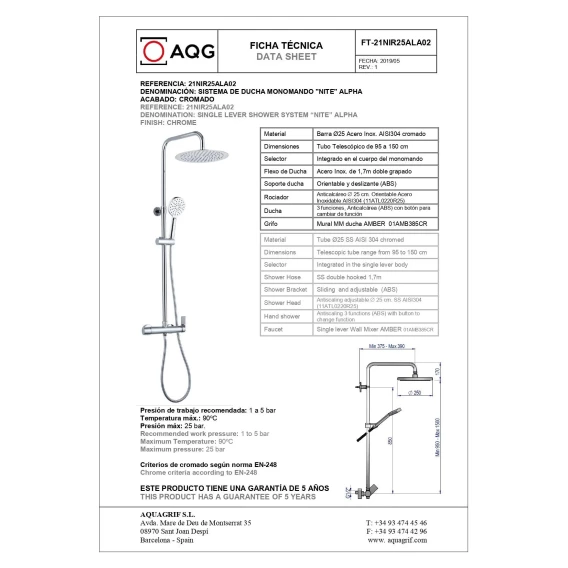 Душевая система AQG Alpha 21NIR25ALA02 250 мм, со смесителем, хром