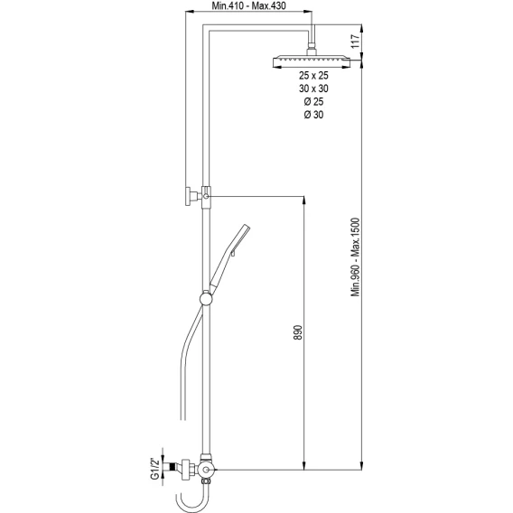 Душевая система 310x200 мм Damixa Merkur 940730300
