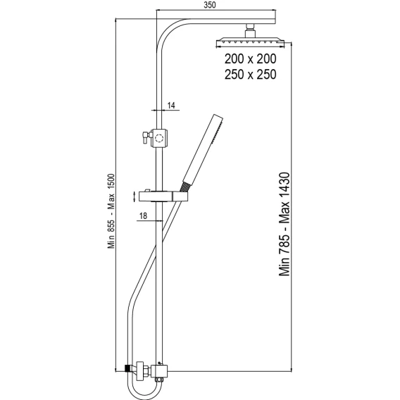 Металлическая розетка, Эксцентрики, Душевой шланг, Душевая лейка, Держатель для душевой лейки, Верхний душ, Смеситель, Кронштейн, Штанга душевая