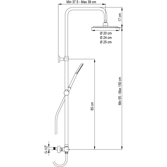 Металлическая розетка, Эксцентрики, Душевой шланг, Душевая лейка, Держатель для душевой лейки, Верхний душ, Смеситель, Кронштейн, Штанга душевая