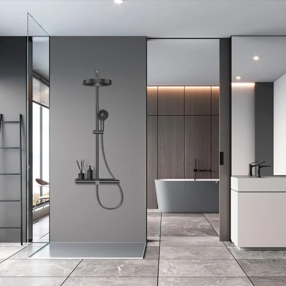 Аэратор, Эксцентрики, Душевой шланг, Душевая лейка, Держатель для душевой лейки, Полочка, Верхний душ, Смеситель, Кронштейн, Штанга душевая
