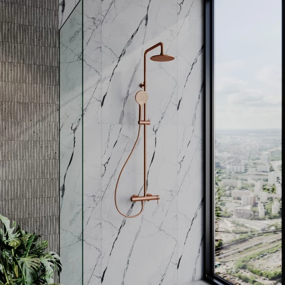 Душевая система AQUAme AQM8011BC 250 мм, со смесителем, медь матовая