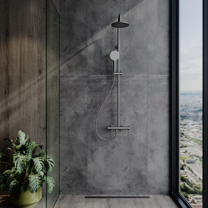 Душевая система AQUAme AQM8011GM 250 мм, со смесителем, оружейная сталь
