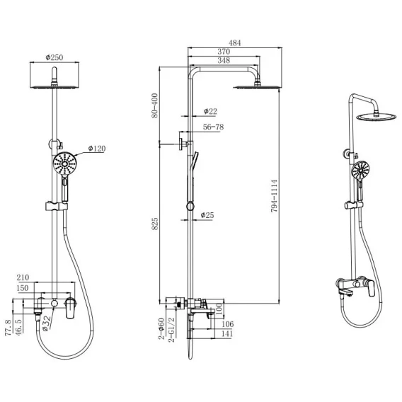 Душевая система 320x200 мм AltroBagno Lamberto AltroBagnoLamberto030418MB