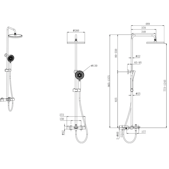 Крепление, Аэратор, Металлическая розетка, Эксцентрики, Душевой шланг, Душевая лейка, Держатель для душевой лейки, Верхний душ, Кронштейн, Штанга душевая, Термостат