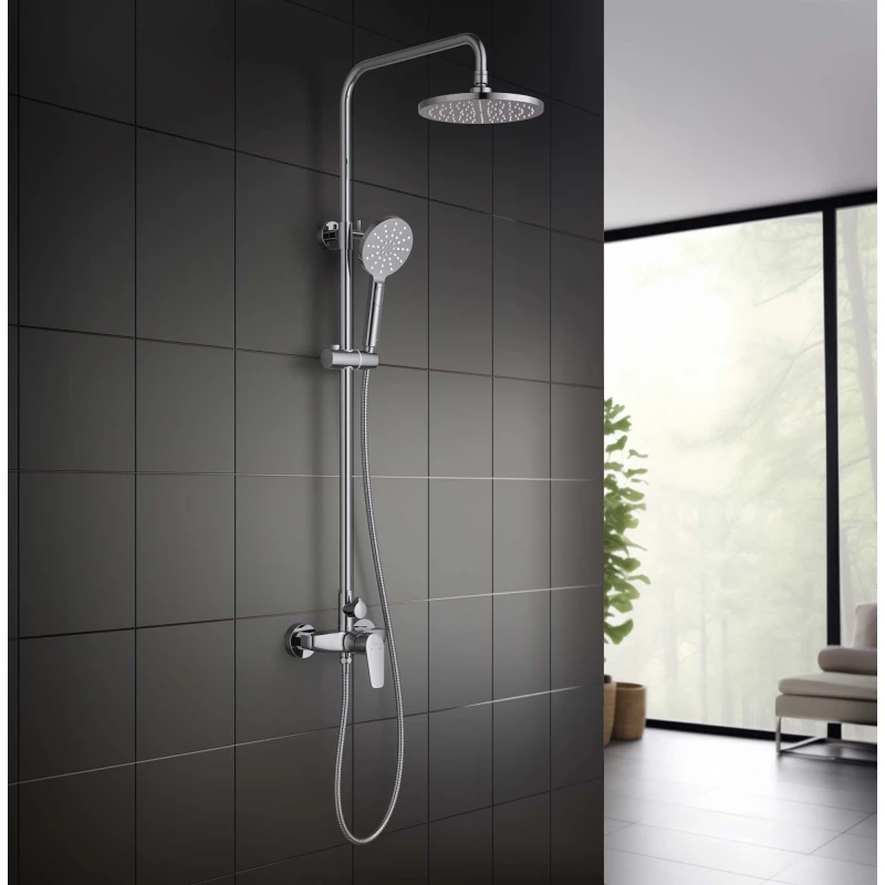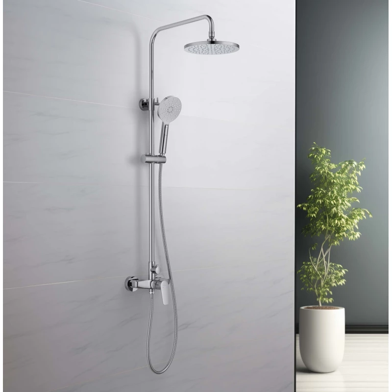 Металлическая розетка, Эксцентрики, Душевой шланг, Душевая лейка, Держатель для душевой лейки, Верхний душ, Смеситель, Кронштейн, Штанга душевая