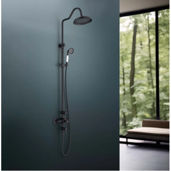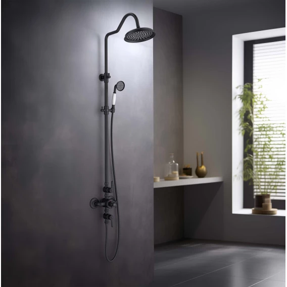Душевая система Aquatek Классик AQ2563MB 220 мм, с термостатом, черный матовый