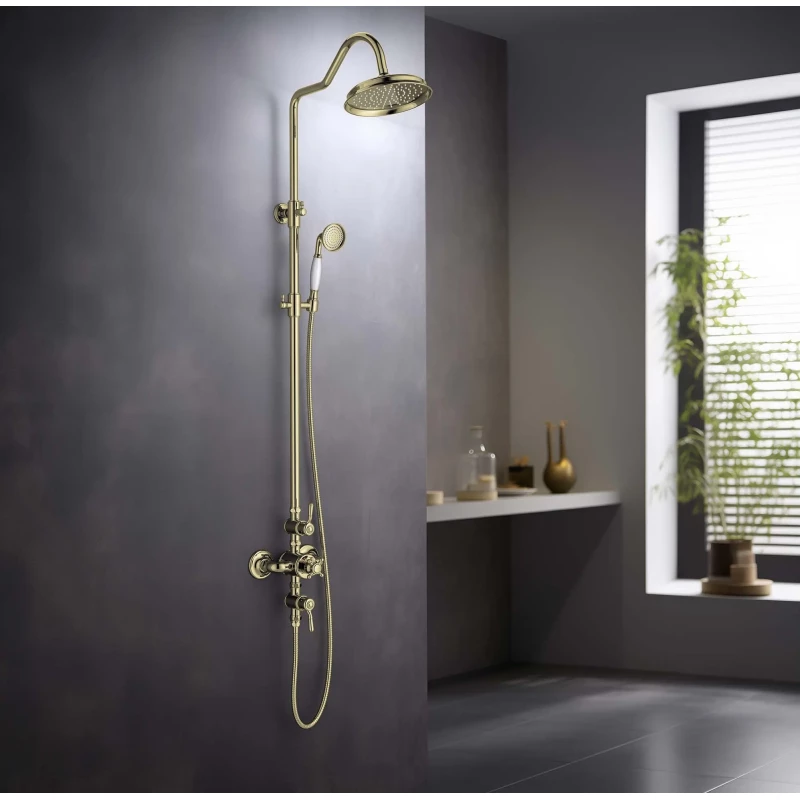 Душевая система Aquatek Классик AQ2563PG 220 мм, с термостатом, золотой