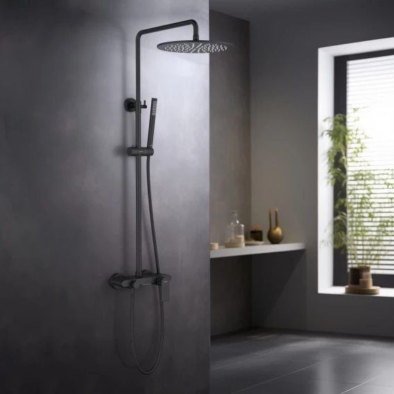 Душевая система Aquatek Лира AQ2440MB 300 мм, со смесителем, черный матовый