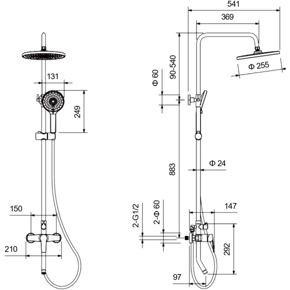 Душевая система Aquatek Лугано AQ2740BGM 255 см, со смесителем, оружейная сталь матовый
