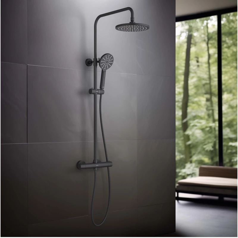 Металлическая розетка, Эксцентрики, Душевой шланг, Душевая лейка, Держатель для душевой лейки, Верхний душ, Кронштейн, Штанга душевая, Термостат