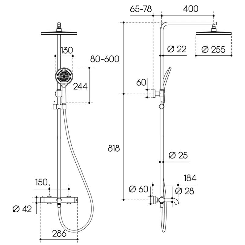Аэратор, Металлическая розетка, Эксцентрики, Душевой шланг, Душевая лейка, Держатель для душевой лейки, Верхний душ, Смеситель, Кронштейн, Штанга душевая