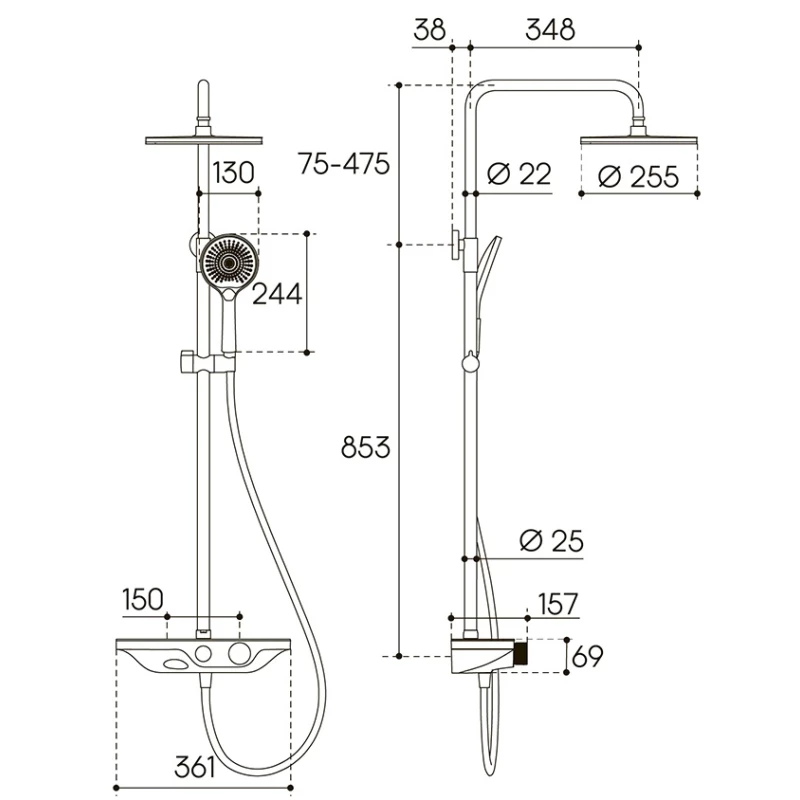 Аэратор, Эксцентрики, Душевой шланг, Душевая лейка, Держатель для душевой лейки, Полочка, Верхний душ, CoolStart, Смеситель, Кронштейн, Штанга душевая
