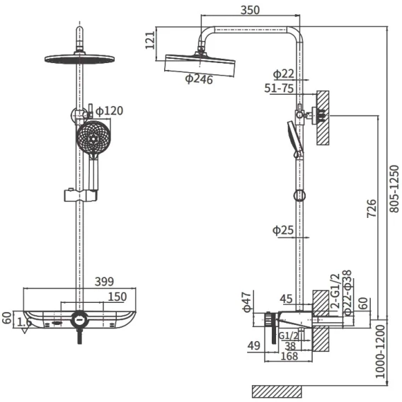 Душевая система Arrow AD3336SHCP 246 мм, с термостатом, хром
