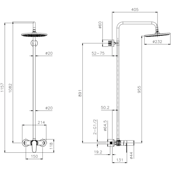 Душевая система Arrow AG3106 232 мм, со смесителем, хром