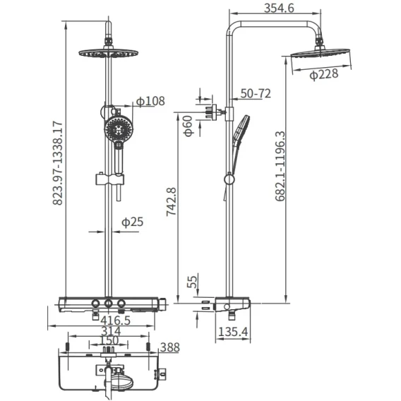 Душевая система Arrow AG3308SH 228 мм, с термостатом, хром