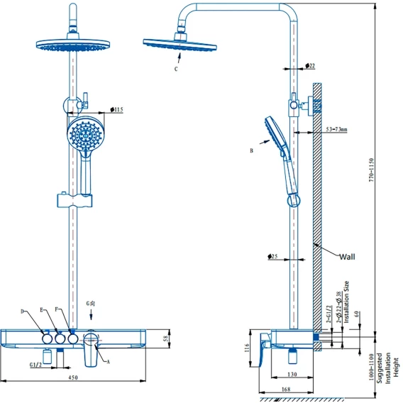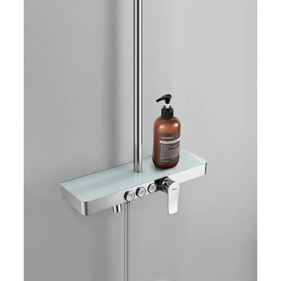 Аэратор, Эксцентрики, Душевой шланг, Душевая лейка, Держатель для душевой лейки, Подключение для душевого шланга, Полочка, Верхний душ, Смеситель, Кронштейн