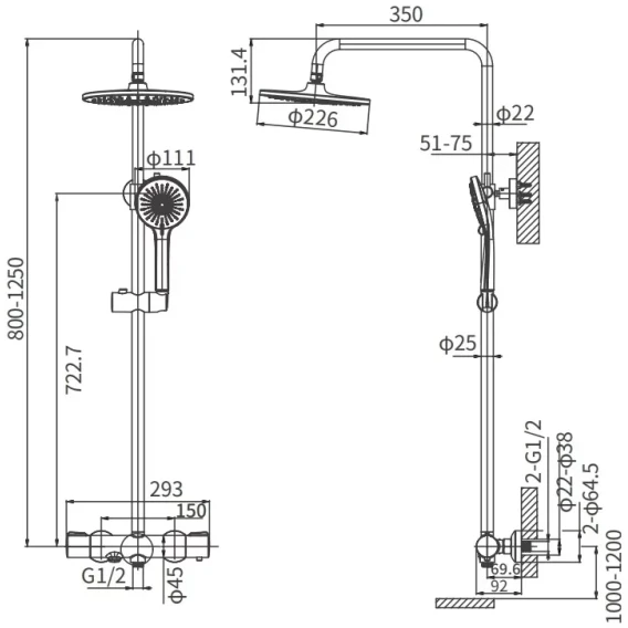 Душевая система Arrow AG3318CP 226 мм, с термостатом, хром
