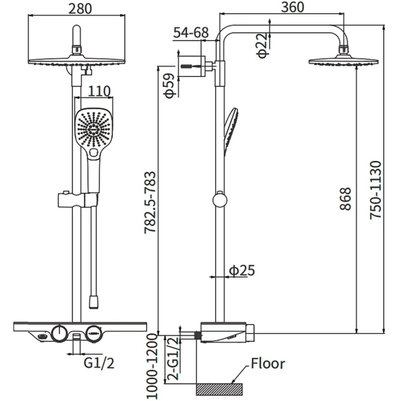 Душевая система Arrow AG3331CP 280x200 мм, со смесителем, хром