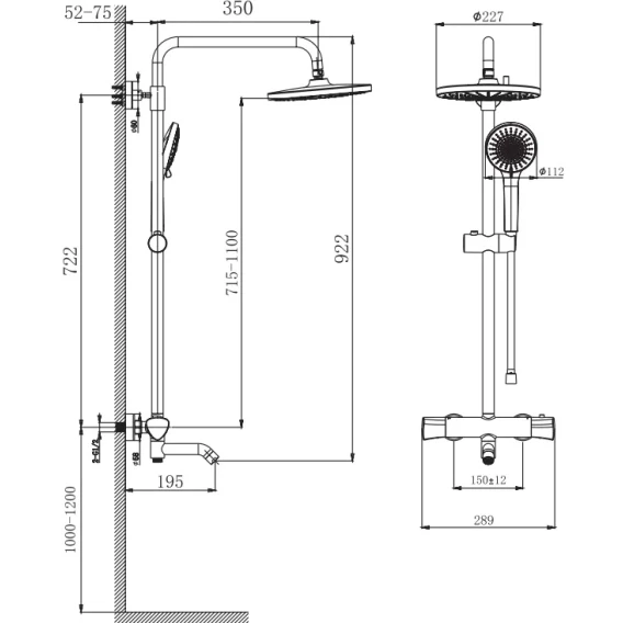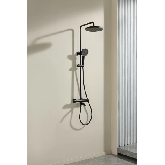 Душевая система Arrow AMG13SH848U2BC 227 мм, с термостатом, черный матовый