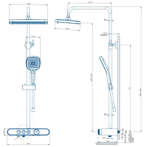 Душевая система Arrow AMG13SH855A 320x210 мм, с термостатом, хром