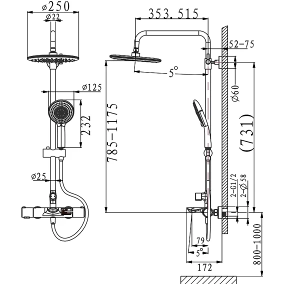 Душевая система Arrow AMG13SH857 250 мм, с термостатом, хром