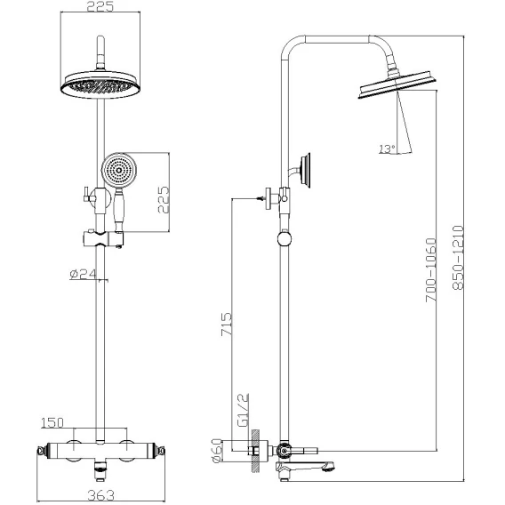 Аэратор, Металлическая розетка, Эксцентрики, Душевой шланг, Душевая лейка, Держатель для душевой лейки, Верхний душ, Смеситель, Кронштейн, Штанга душевая