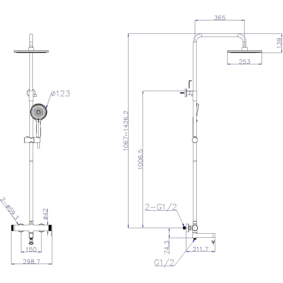 Душевая система BelBagno Delta 2.0 DEL2.0-VSCM-IN 253 см, со смесителем, сатин