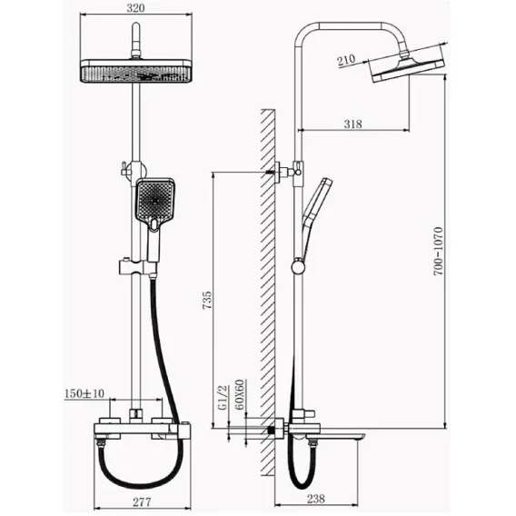 Душевая система Belz B24672 320x210 мм, со смесителем, хром