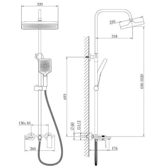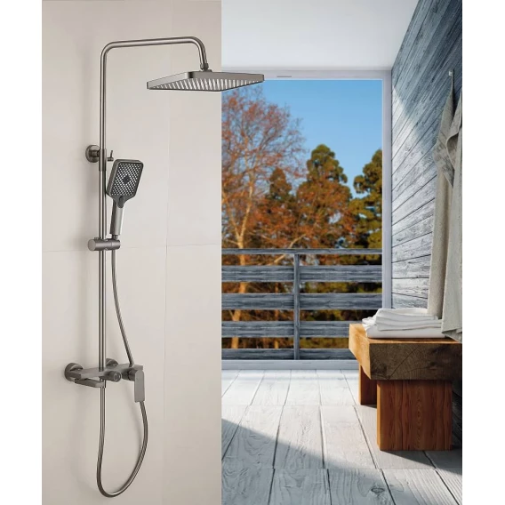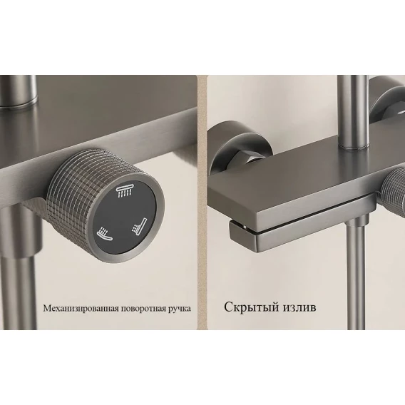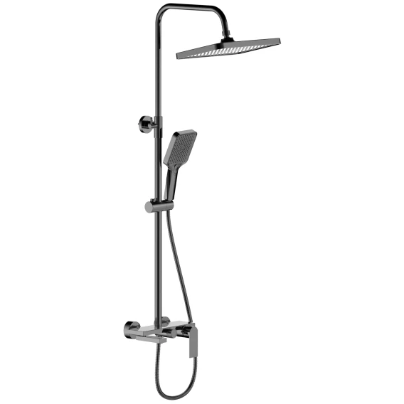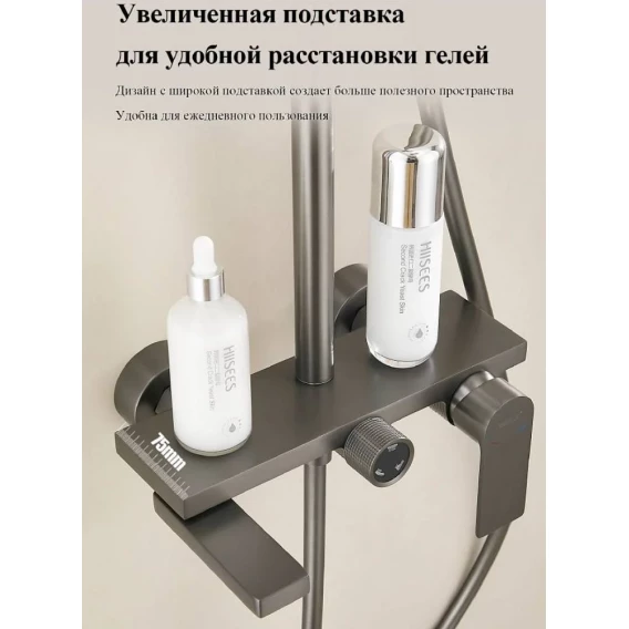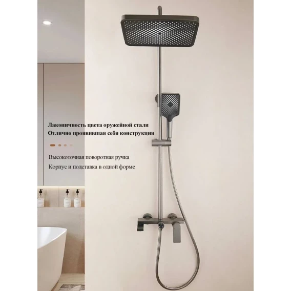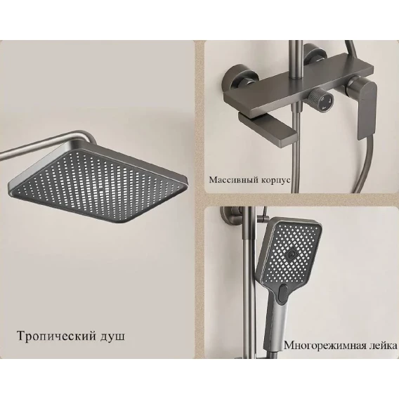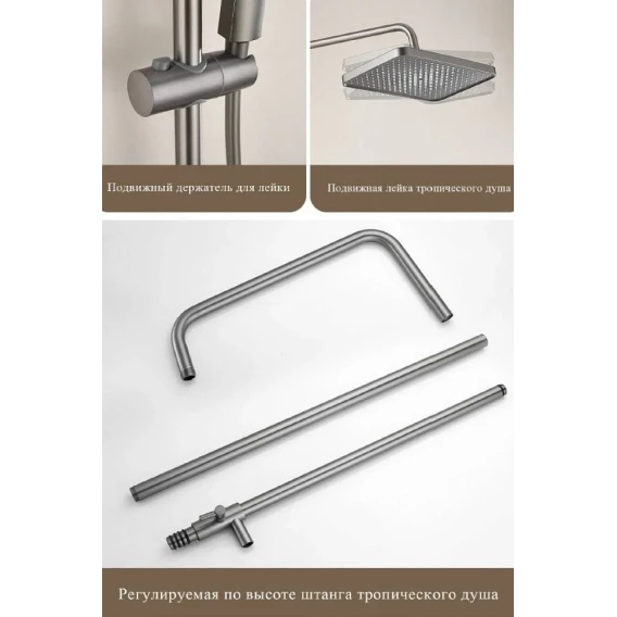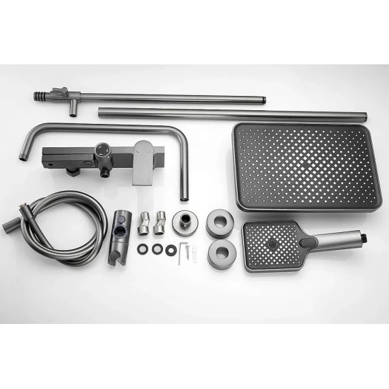 Аэратор, Эксцентрики, Душевой шланг, Душевая лейка, Держатель для душевой лейки, Полочка, Верхний душ, Металлический каркас, Смеситель, Кронштейн, Штанга душевая