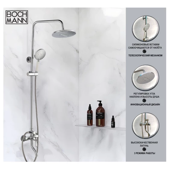 Душевая система AQUAme AQM8001CR 200 мм, со смесителем, хром