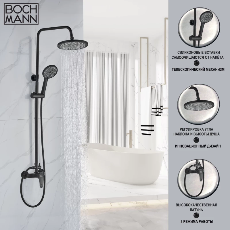 Металлическая розетка, Эксцентрики, Душевой шланг, Душевая лейка, Держатель для душевой лейки, Верхний душ, Смеситель, Кронштейн, Штанга душевая
