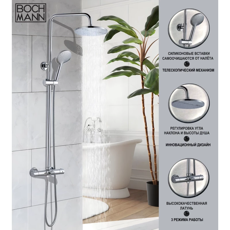 Душевая система Boch Mann Oglio BM9648 с термостатом, хром