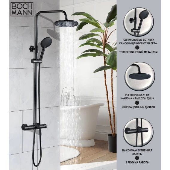 Душевая система Boch Mann Oglio BM9649 с термостатом, черный матовый