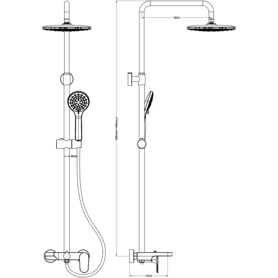 Аэратор, Металлическая розетка, Эксцентрики, Душевой шланг, Душевая лейка, Держатель для душевой лейки, Верхний душ, Смеситель, Кронштейн, Штанга душевая