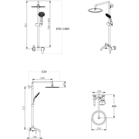 Душевая система Bond Smart B63-9100 250 мм, со смесителем, сатин