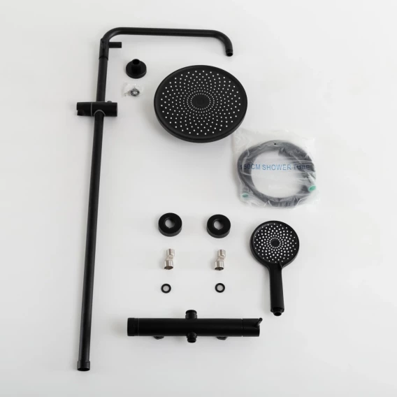 Металлическая розетка, Эксцентрики, Душевой шланг, Душевая лейка, Держатель для душевой лейки, Верхний душ, Смеситель, Кронштейн, Штанга душевая