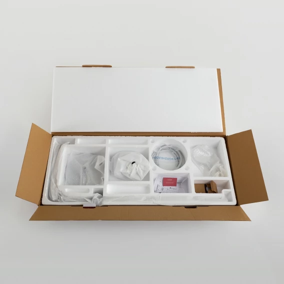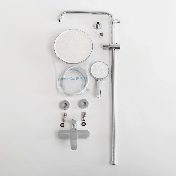 Металлическая розетка, Эксцентрики, Душевой шланг, Душевая лейка, Держатель для душевой лейки, Верхний душ, Смеситель, Кронштейн, Штанга душевая