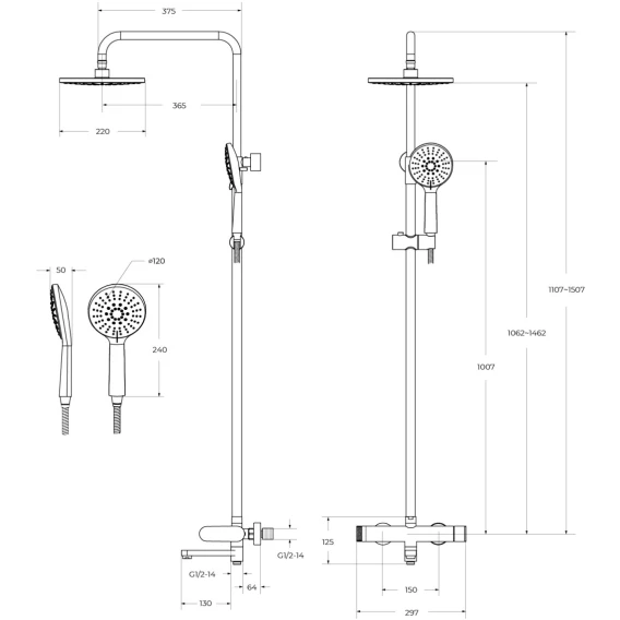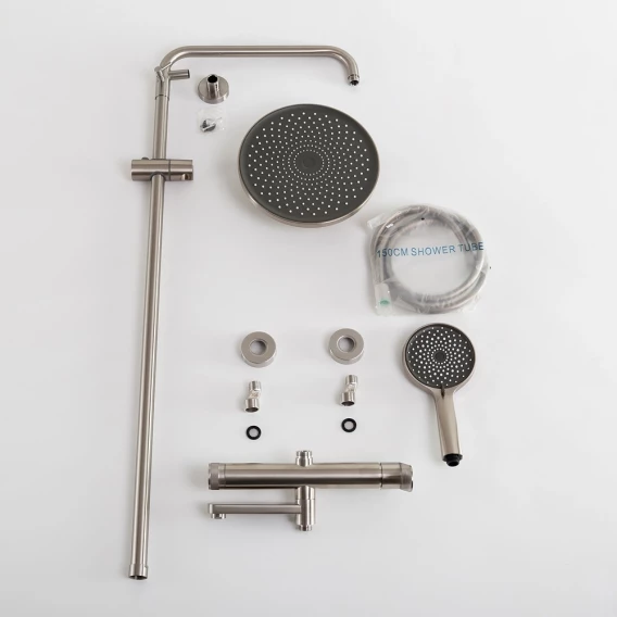 Аэратор, Металлическая розетка, Эксцентрики, Душевой шланг, Душевая лейка, Держатель для душевой лейки, Верхний душ, Смеситель, Кронштейн, Штанга душевая