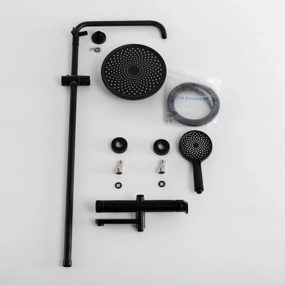 Аэратор, Металлическая розетка, Эксцентрики, Душевой шланг, Душевая лейка, Держатель для душевой лейки, Верхний душ, Смеситель, Кронштейн, Штанга душевая