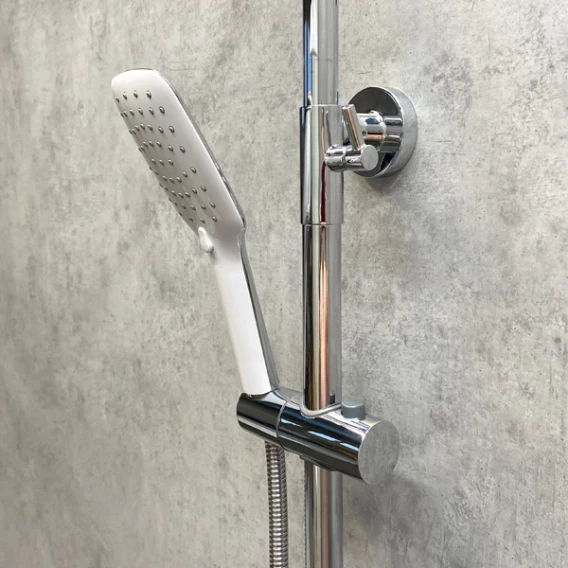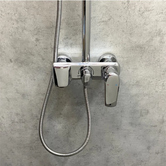 Аэратор, Металлическая розетка, Эксцентрики, Душевой шланг, Душевая лейка, Держатель для душевой лейки, Верхний душ, Смеситель, Кронштейн, Штанга душевая