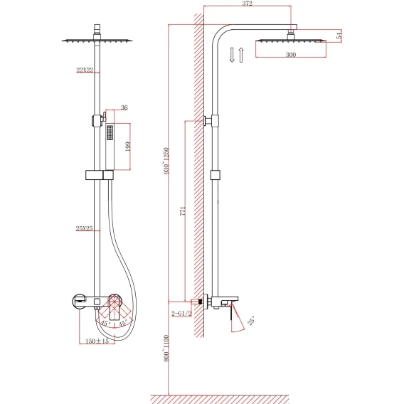 Аэратор, Металлическая розетка, Эксцентрики, Душевой шланг, Душевая лейка, Держатель для душевой лейки, Верхний душ, Смеситель, Кронштейн, Штанга душевая