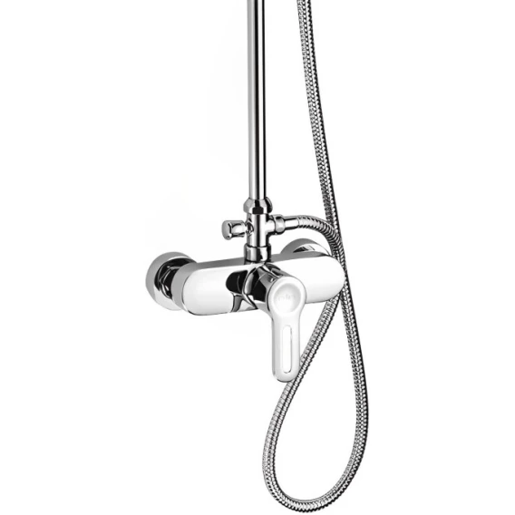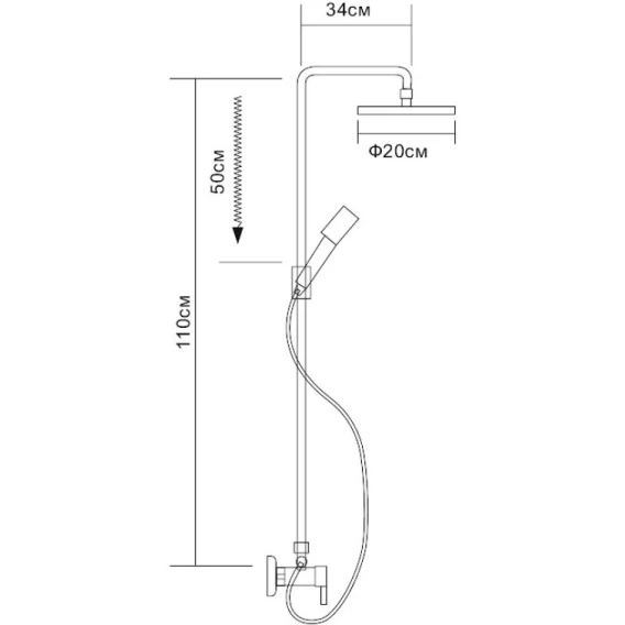 Металлическая розетка, Эксцентрики, Душевой шланг, Душевая лейка, Держатель для душевой лейки, Верхний душ, Смеситель, Кронштейн, Штанга душевая