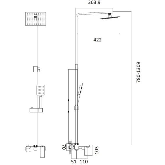 Душевая система D-Lin H10A24 200 мм, со смесителем, черный матовый
