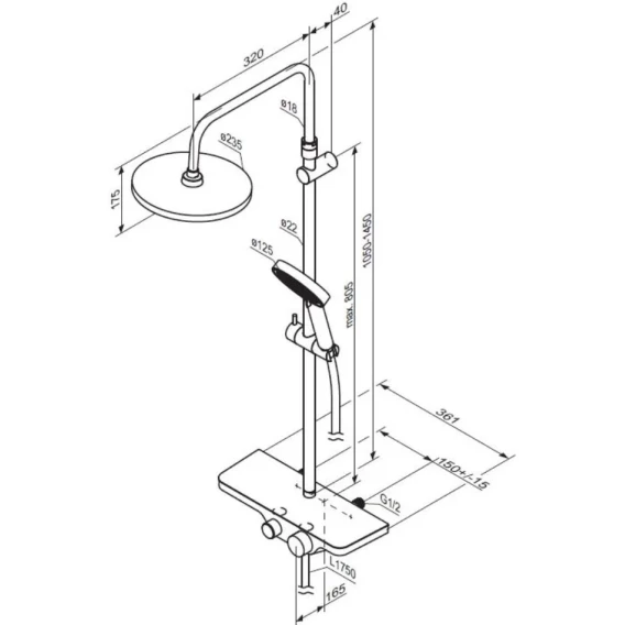 Эксцентрики, Душевой шланг, Душевая лейка, Держатель для душевой лейки, Полочка, Верхний душ, CoolStart, Смеситель, Кронштейн, Штанга душевая