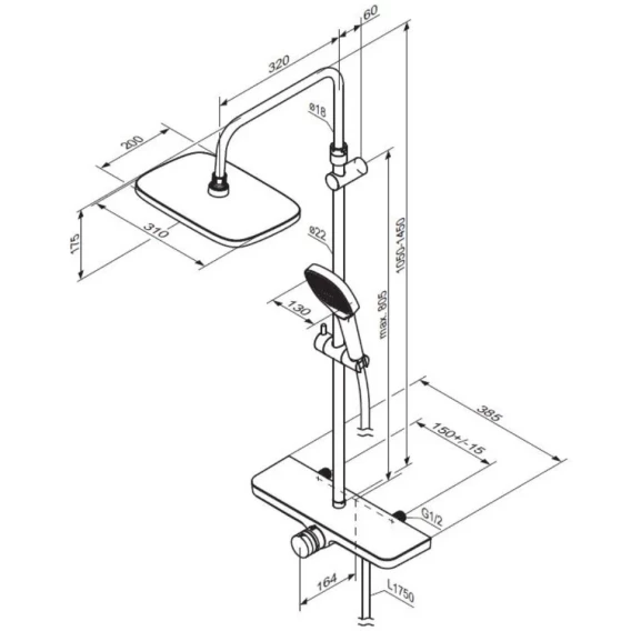 Душевая система Damixa Merkur 940730000 со смесителем, 310x200 мм, хром