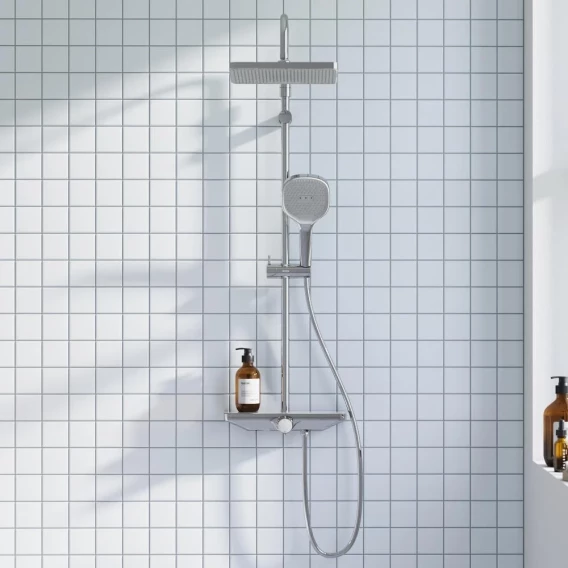 Душевой шланг, Душевая лейка, Держатель для душевой лейки, Полочка, Верхний душ, Смеситель, Кронштейн, Штанга душевая