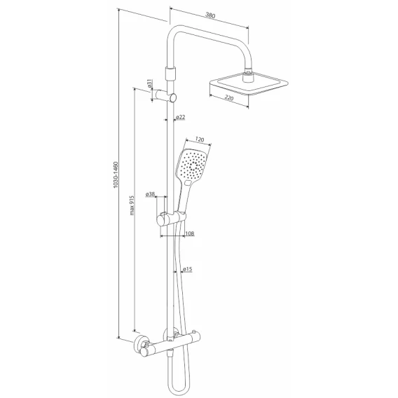Душевая система Damixa Option DX218092000 с термостатом, 220 мм, хром
